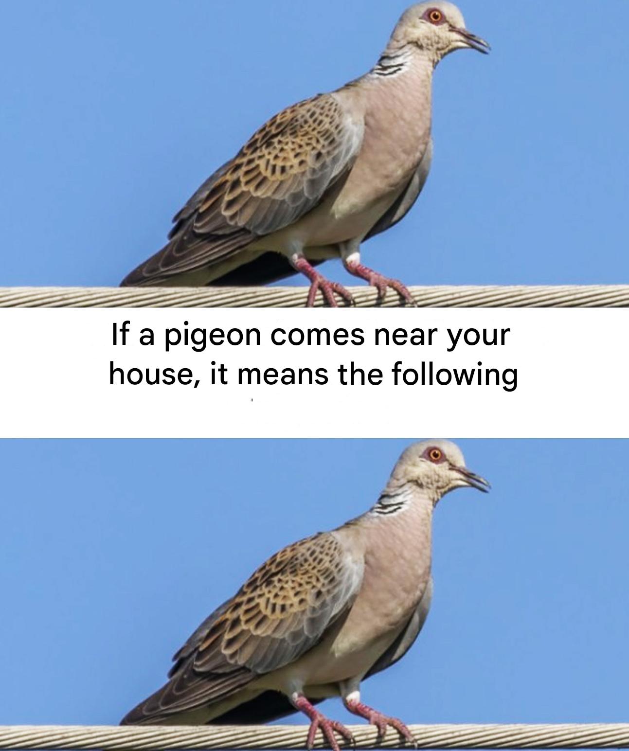 In short, if  a pigeon  lands in your house, it’s probably not a coincidence… But often a nice wink from the universe.
