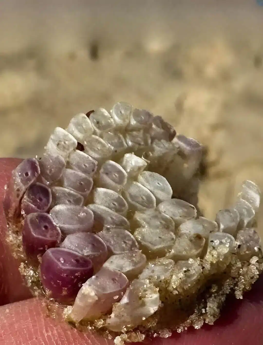 A few moments later, his answer brought a broad and genuine smile to my face! This supposed sea creature was nothing more than a cluster of sea snail eggs . These discreet little gastropods, often seen attached to rocks, had chosen my bath towel as a place to lay their eggs!