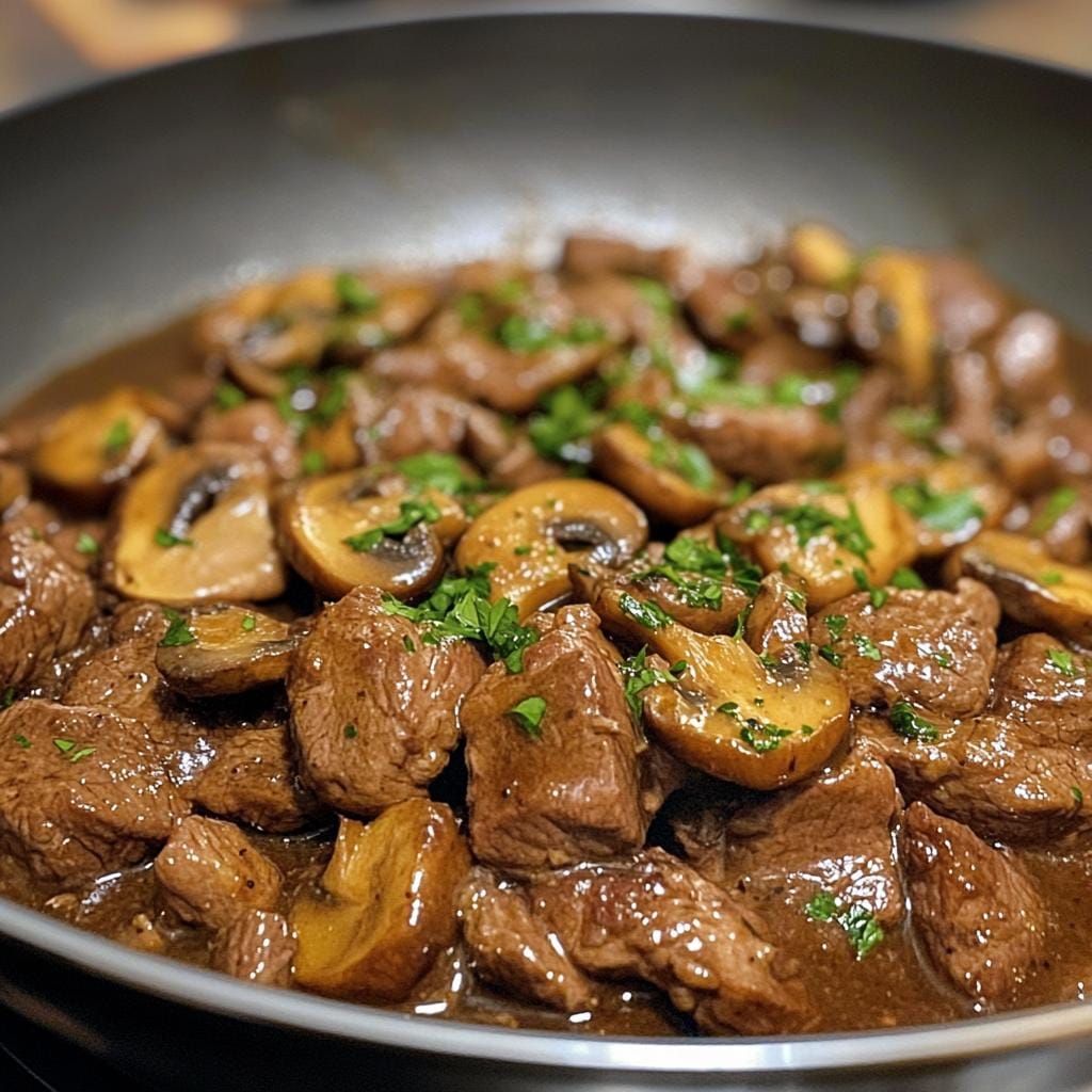 Brown the Beef: Heat olive oil in a large skillet over medium heat. Add the beef tips and cook until browned on all sides. Remove and set aside.