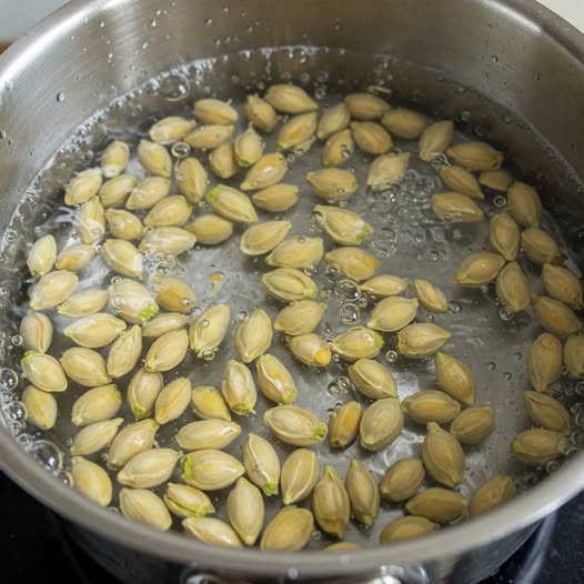 2. Dry them gently and carefully remove the outer skin using tweezers.