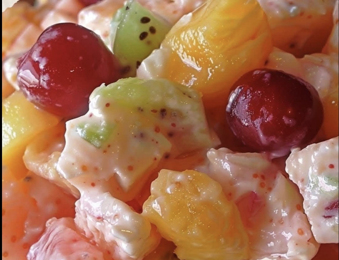 Serve the fruit salad cold. Top with a dollop of whipped cream if desired.