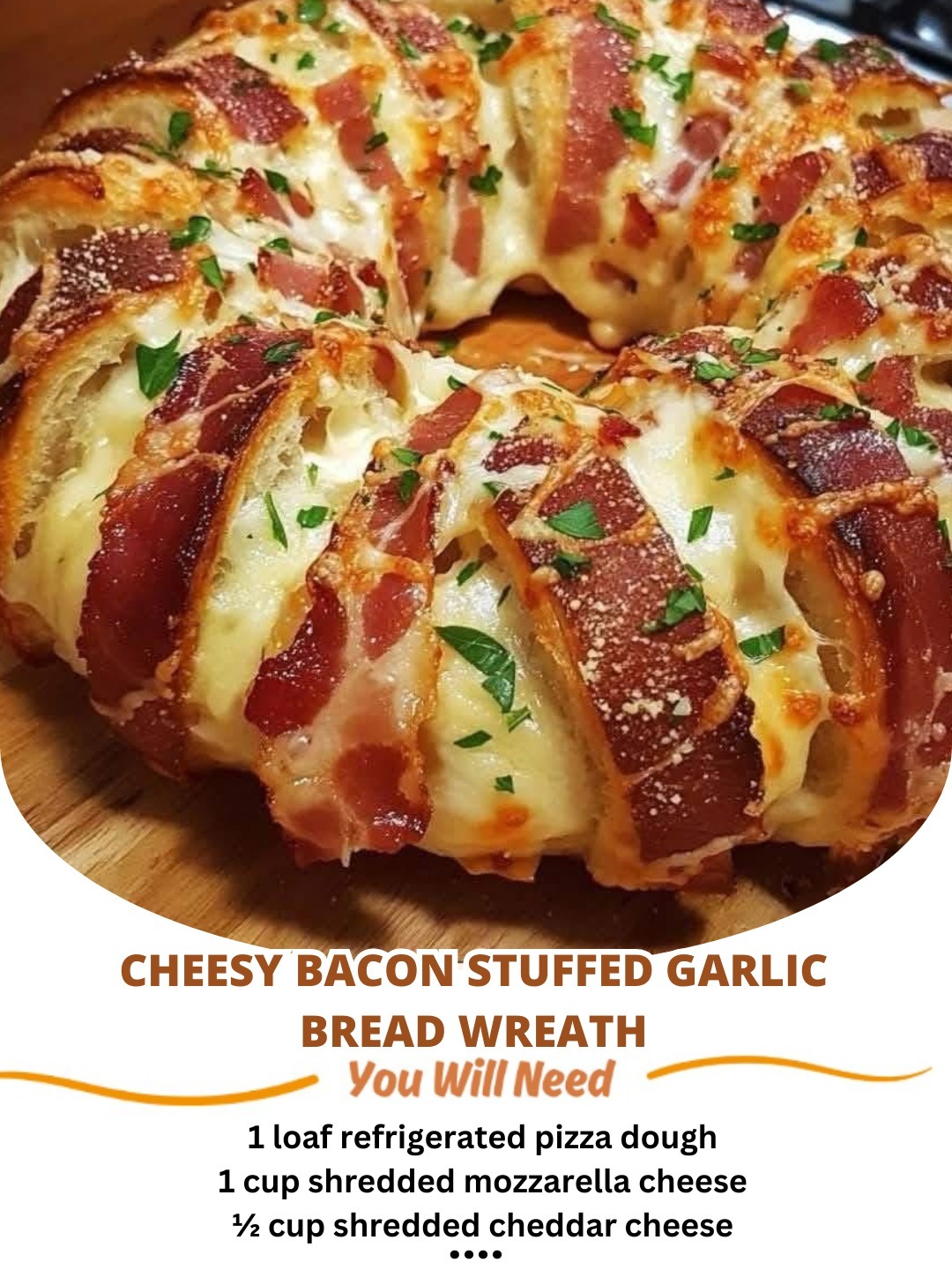 Cheesy Bacon Stuffed Garlic Bread Wreath