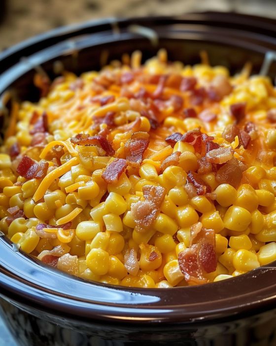 Slow Cooker Cheddar Corn with Bacon