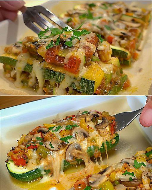 This garden-fresh zucchini lasagna with mushroom and mixed vegetables is a delicious and healthy twist on classic lasagna. By using zucchini slices instead of traditional pasta, this dish is not only lower in carbohydrates but also bursting with fresh flavors. The combination of mushrooms, peppers, and tomatoes creates a hearty filling, perfectly complemented by melted cheese and fresh herbs. This lasagna is ideal for a healthy dinner and is sure to impress your family and guests.