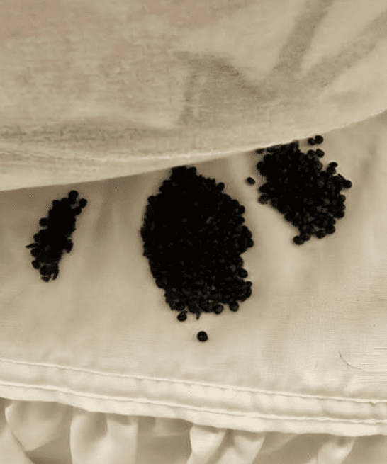 In the corner of the bed frame, tucked just out of sight, was a tiny pile of black grains. At first glance, they looked unsettling — dull but slightly shiny, like bits of charcoal or maybe… insect eggs.