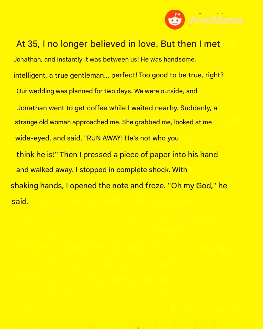 I was about to marry the perfect man: smart, kind, and everything I wanted. But two days before my wedding, a tired-looking stranger stopped me on the street, pressed a note into my hand, and said, “He’s not who you think he is.” I wanted to forget, but something told me I had to know the truth.