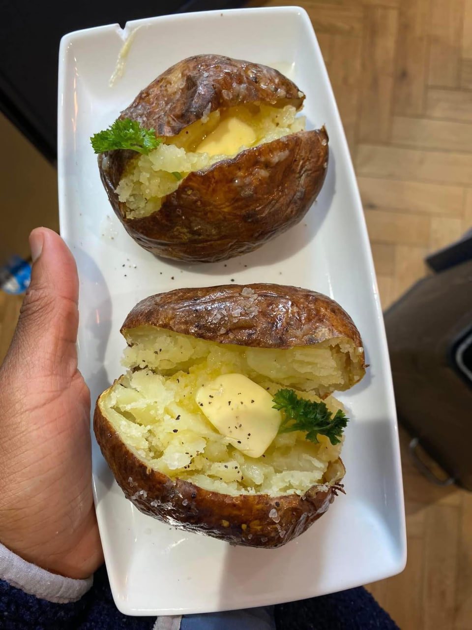 Cooking them in the air fryer will take your jacket potato experience up a noch! Why? The skin is so so crispy and the inside is so soft and fluffy.