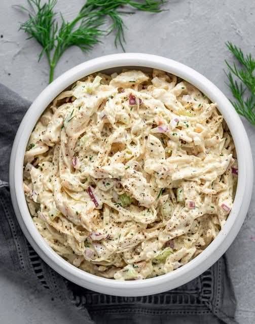 If you’re on the go and looking for an incredible and delicious taste, Keto Cream of Chicken Salad will make you feel like heaven. This salad is topped with red onions, celery, cooked chicken, and mayonnaise.