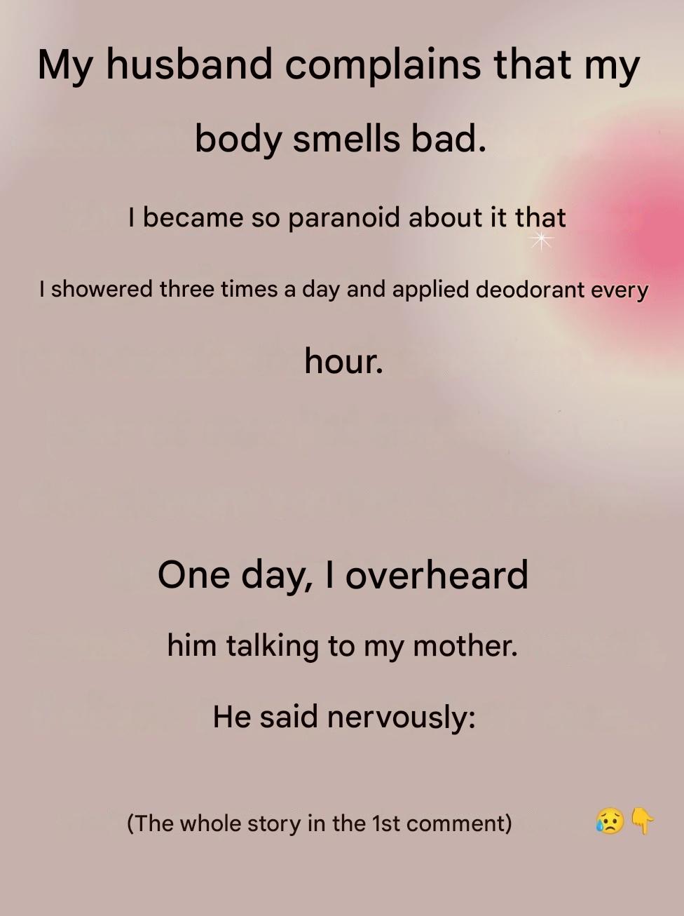 A 35-year-old woman wrote to our editorial office and opened her heart. She expressed how difficult it had been for her to accept the sad reality: her husband had just revealed a deeply cruel aspect of her personality. According to her, he constantly criticized her for her body odor, which plunged her into great emotional distress. However, her anger reached a new peak when she more about her husband’s cheating , and she felt sincere compassion for his pain.