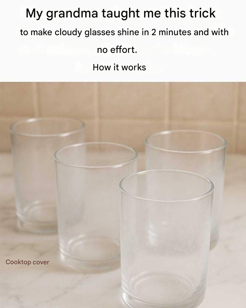 Growing up, I always admired my grandmother’s pristine glass collection, which seemed to twinkle effortlessly in the sunlight. She had a charming knack for keeping her glasses spotless, a skill I assumed was the result of endless scrubbing and polishing. One day, however, she let me in on her little secret—a quick and easy hack that transforms cloudy glasses into sparkling gems in just two minutes. And the best part? It requires absolutely no work.