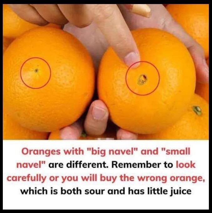 When we choose oranges, pick up each fruit and pay attention to its navel. While the navel of some oranges is large and round, with a very clear indentation in the middle, most others only have a small dot.