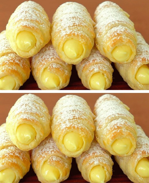 Puff pastry cones filled with custard – a delicious homemade delicacy
