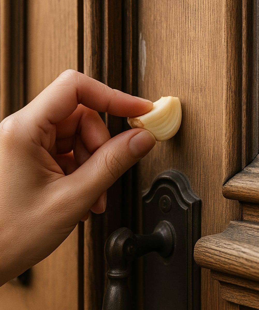 This article introduces a simple, all-natural method to help repel household pests: rubbing a fresh garlic clove on both the inside and outside of your door frame.