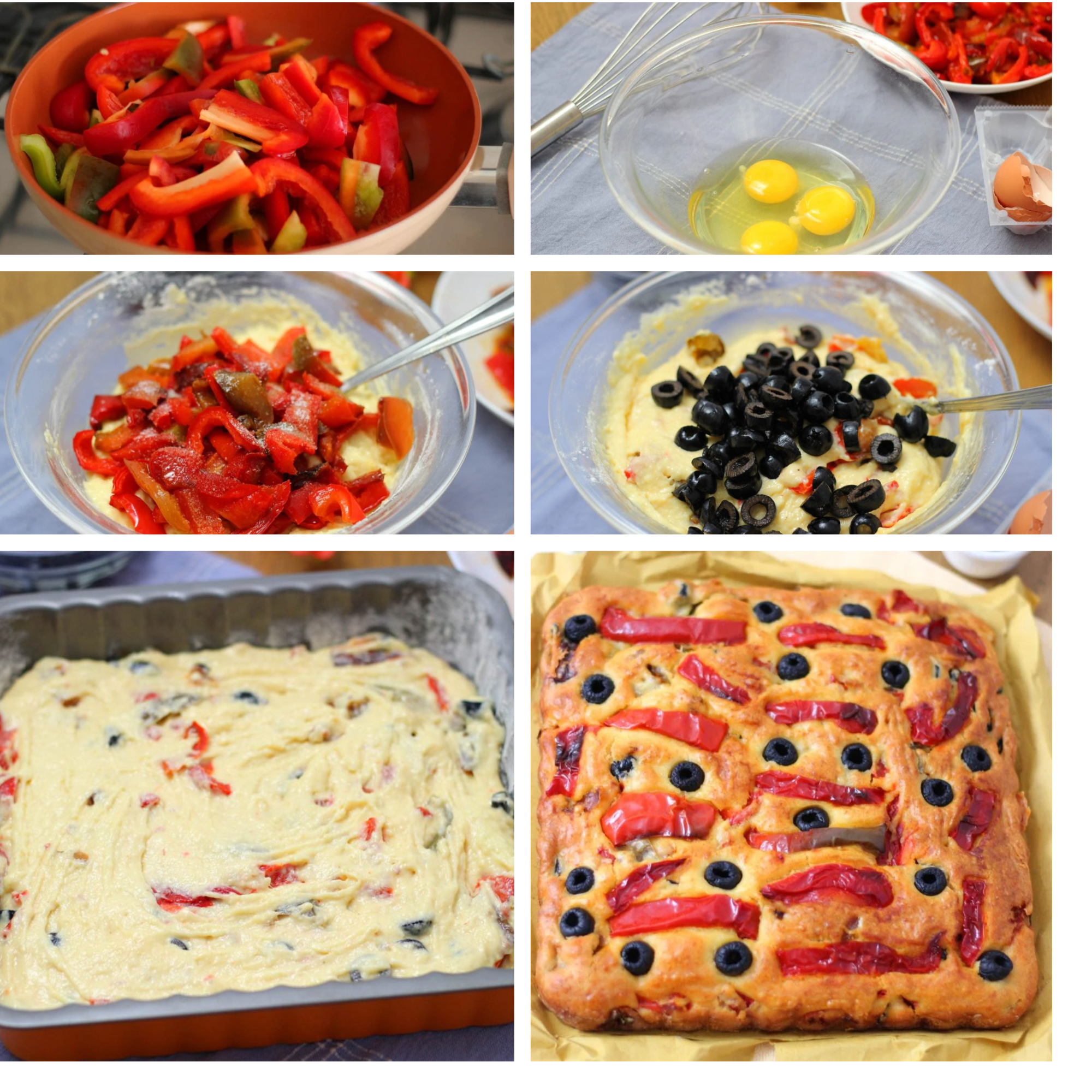 Savory pie with peppers and black olives
