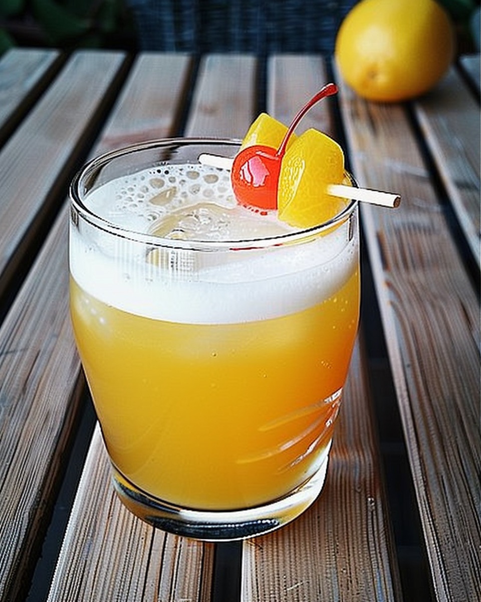 Ingredients: 500 ml passion fruit juice, 500 ml orange juice, 2 tsp lemon juice, 2 tsp syrup (vanilla syrup – very important!), 500 ml vodka, cubed or crushed ice. Preparation: Mix all ingredients well and pour into a water pitcher. Add ice, if desired, and serve.
