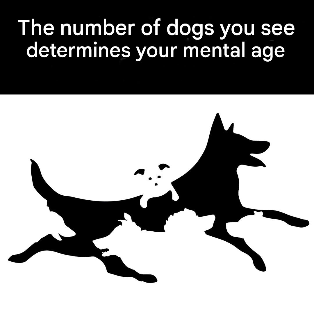 If you find six dogs, your mental age is between 30 and 40 years old . You have a strong character, hate injustice and value honesty. You are a trustworthy person, always there to support your loved ones.