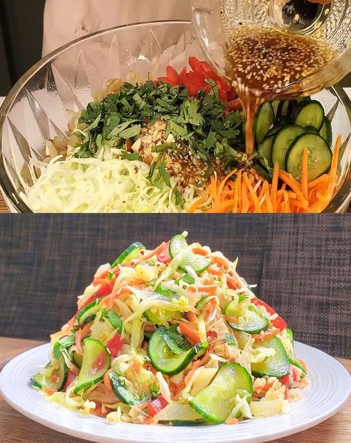 Introduction: Salads are a staple in any healthy diet, and one that stands out for its crisp texture, refreshing flavor, and nutritional value is the cucumber and cabbage salad. This simple yet delightful dish combines the cool crunch of cucumber with the hearty crunch of cabbage, making it the perfect choice for a light lunch, a side dish, or even as a detoxifying snack. Packed with vitamins, fiber, and antioxidants, this salad is not only delicious but also supports digestion and boosts overall health. In this article, we’ll guide you through the steps to make this refreshing cucumber and cabbage salad and share a few variations to keep things exciting.