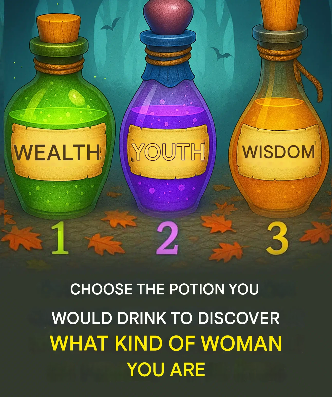 In the heart of a mysterious clearing, three shimmering elixirs call to you. Your instinctive choice will reveal which of your feminine sides dominates your being. Let yourself be guided by the magic of this unique experience.