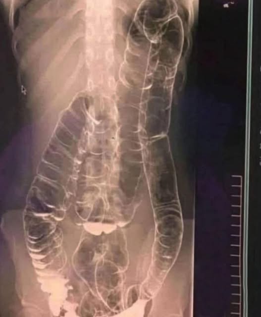 A recent case perfectly illustrates this phenomenon. A patient who had gone nearly two weeks without normal bowel movements underwent a revealing examination. The X-ray showed an abnormally dilated colon, extending up to the chest, clogged with fecal matter that had hardened like concrete.